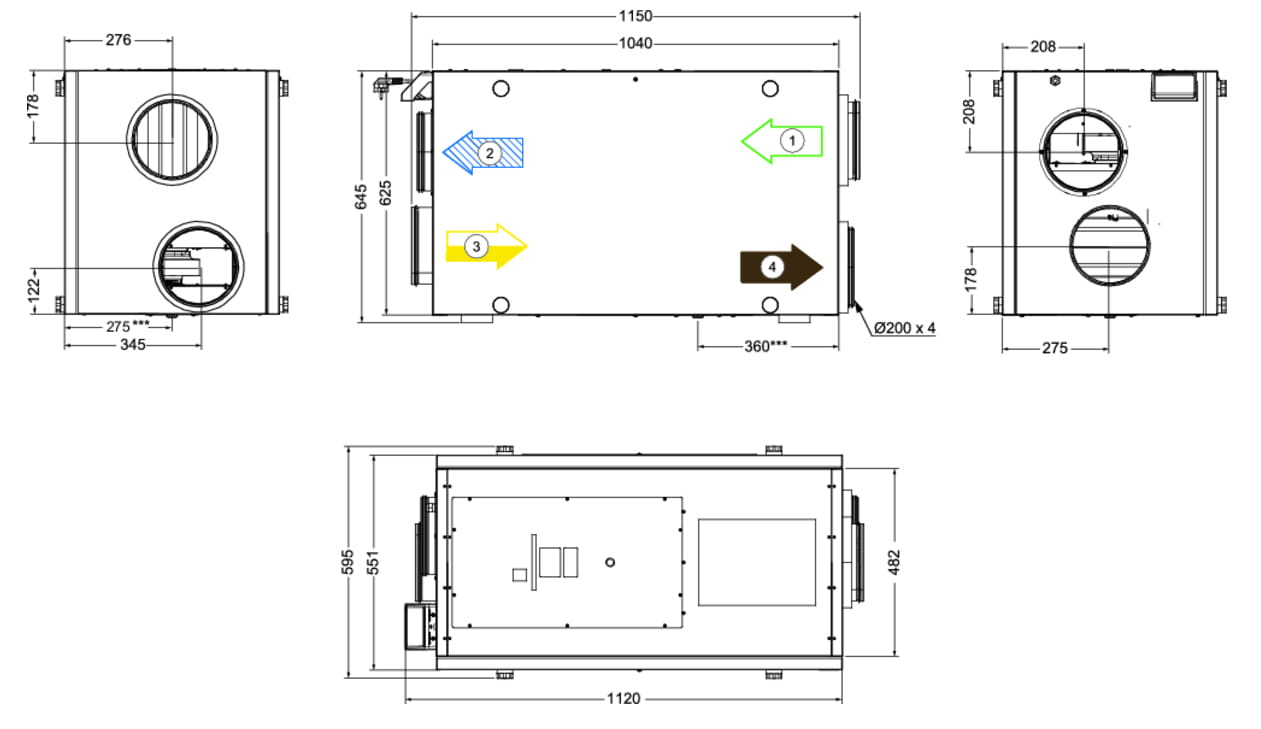 Centralę można zamontować w pozycji pionowej na podłodze (możliwe jest podłączenie zarówno lewo-, jak i prawostronne) lub poziomo na suficie (możliwe jest podłączenie zarówno lewo-, jak i prawostronne). Zestaw do montażu sufitowego jest dostępny jako akcesorium. Instalacja do góry nogami jest zabroniona.