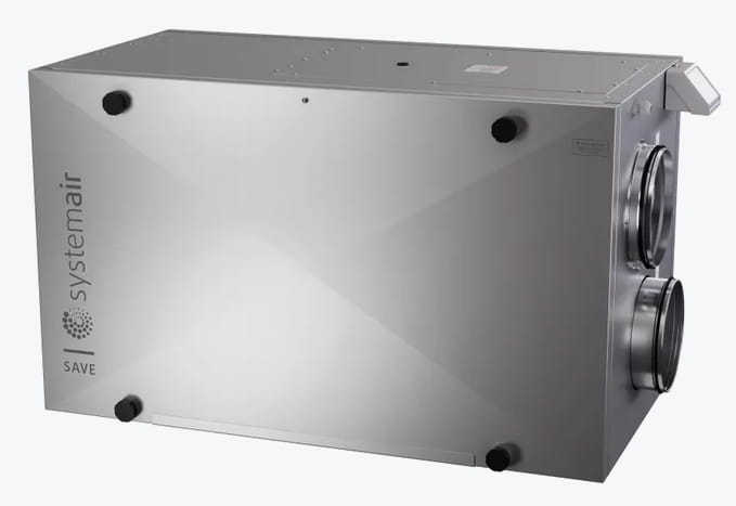 Urządzenie posiada wbudowaną nagrzewnicę elektryczną.Wbudowany czujnik wilgotności powietrza wywiewanego może służyć do sterowania zapotrzebowaniem.Centrala SAVE VSR 500 posiada dwuwarstwowe, w pełni izolowane panele.Serwis i konserwacja są proste dzięki łatwemu demontażowi elementów. Centrala jest wyposażona w wysokosprawny obrotowy wymiennik ciepła o zmiennej prędkości oraz funkcję przenoszenia wilgoci, która reguluje prędkość obrotową rotora. Energooszczędne wentylatory z silnikami EC oraz filtrami o niskich oporach przepływu powietrza zmniejszają zużycie energii i zapewniają niski współczynnik SFP (moc właściwa wentylatorów) i poziom dźwięku.• Certyfikat Eurovent i Passive House