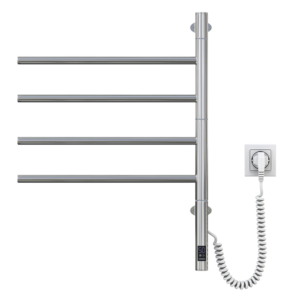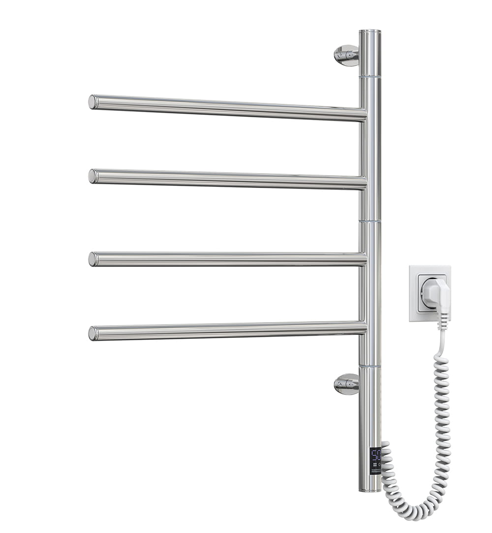 Konstrukcja z ramionami obrotowymi 180°, kolektor (średnica/grubość ścianki) 32/1,5 mm, poprzeczka (średnica/grubość ścianki) 20/1,2 mm, materiał stal nierdzewna AISI 201, polerowana INOX.