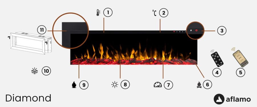 Kominki elektryczne Aflamo Diamond mają nowoczesny desing i posiadają: