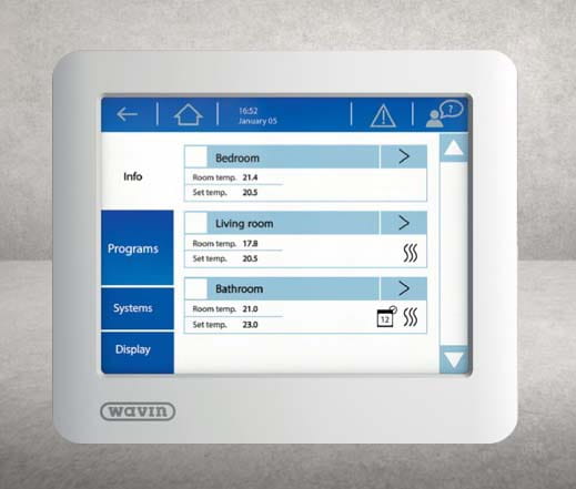 Twój osobisty ekran dotykowy to wyświetlacz, który można wykorzystać do wszystkich instalacji. Jego wstępnie ustawione profile umożliwiają szybkie i bezproblemowe uruchomienie systemu. Ekran zapewnia wysoki poziom elastyczności ustawień, a ich zmienianie nie wymaga żadnych szczególnych umiejętności.