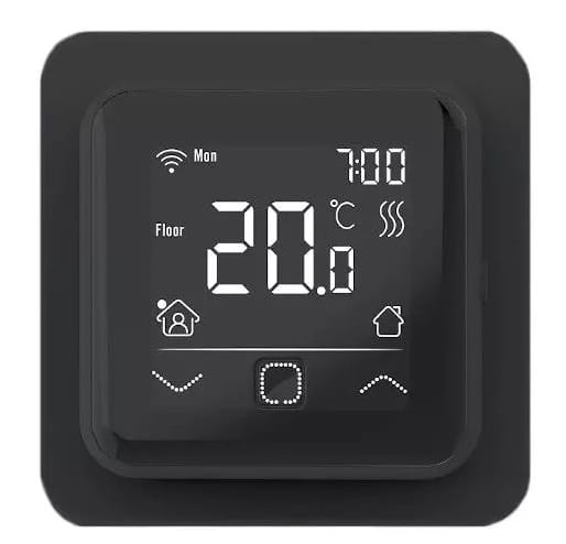 Zestaw zawiera elektroniczny, podtynkowy regulator temperatury TVT 40 CC WiFi (obudowa czarna), z regulacją manualną i czujnikiem podłogowym w komplecie, posiadający przełącznik włącz/wyłącz, podświetlany dotykowy ekran, sterowanie dodatkowe WiFi.